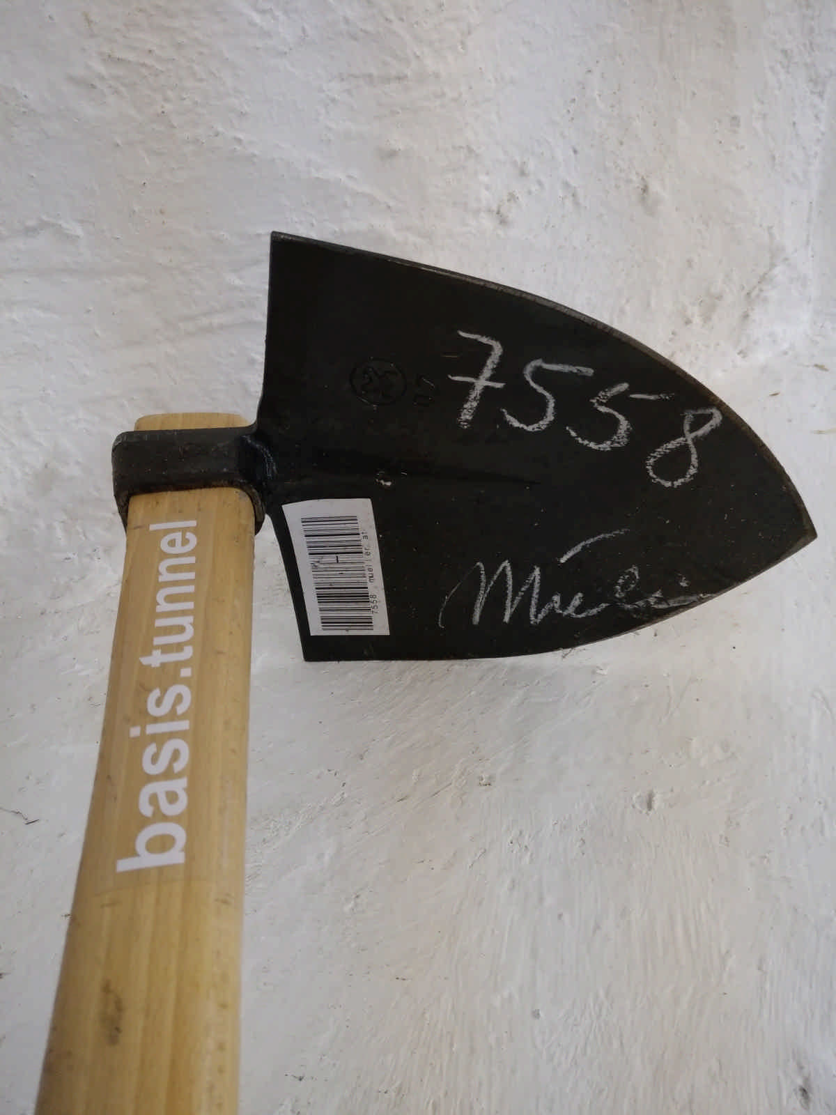 Für Tunnelgräber zum Graben; für Spiegelputzer zum Schürfen im Basistunnel. Das Heindl ist sowohl Hacke als auch Schaufel. Damit kann der Kübel mit Aushub gefüllt werden und somit as ideale Werkzeug für Tunnelgräber und Spiegelputzer im Basistunnel. 32 Heindl habe ich Signiert und Punziert.
