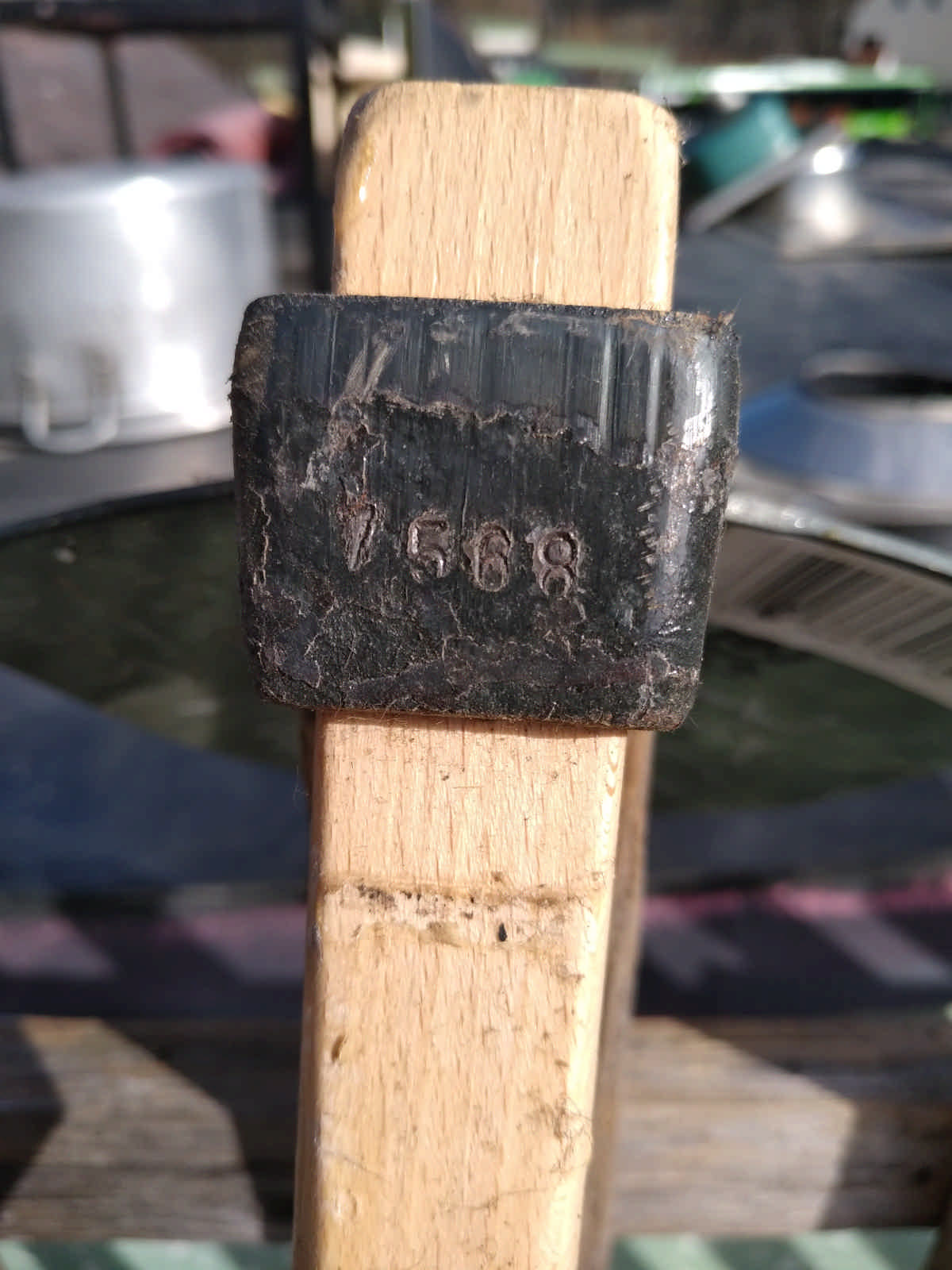 wo das Metall mit dem Holz zusammen kommt eine Hauptbuchnummer in das Eisen eingeschlagen,