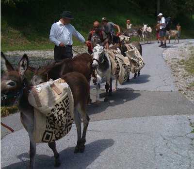 Radlpass transportiert werden soll. Zumindest sieben Esel, mit je 40 kg