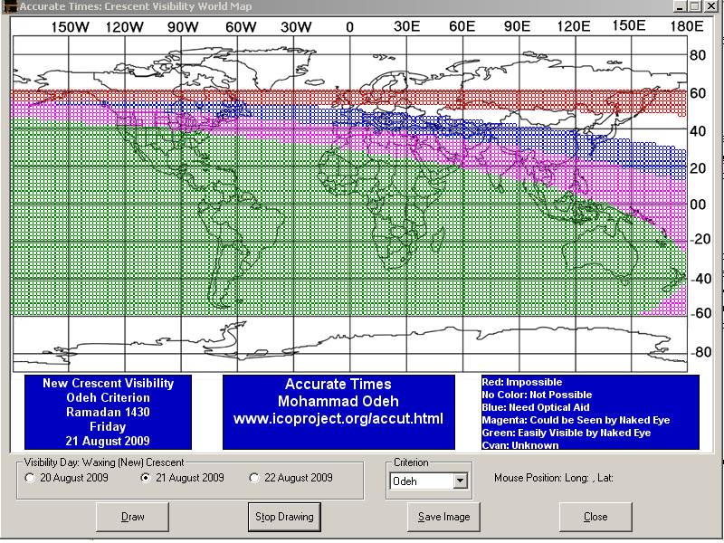 Astronomische Berechnungen - wann der Hilaal vermutlich gesehen-, bzw. sicher noch nicht zu sehen sein wird, sind ein Hilfsmittel, doch entsprechend der Sunnah des Propheten - der Segen und der Friede Allahs seien mit ihm - gilt nur die tatsächliche Sichtung des Hilaals mit dem freien Auge. Sichtungsmeldungen die astronomisch unmöglich sind (wie etwas aus Riad bekannt gegeben werden) oder systematische Vorberechnungen (Ankara usf.) sind zu ignorieren. Astronomisch unmögliche Hilaalsichtungen gelten als Einbildungen.