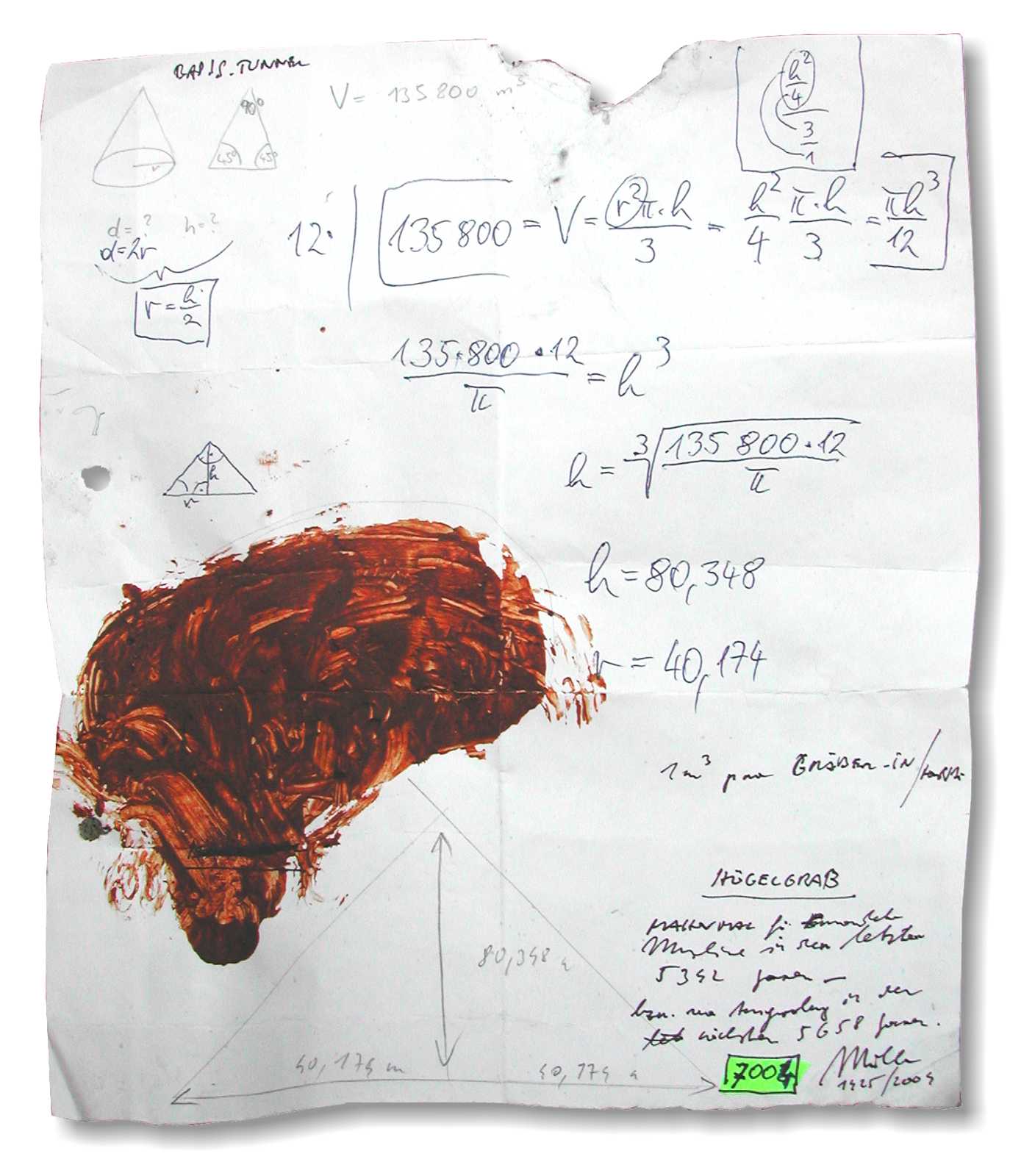 24 x 21 cm | Papier | | Kugelschreiber, Erde | Berechnung der Maße | 1425 (2004)
