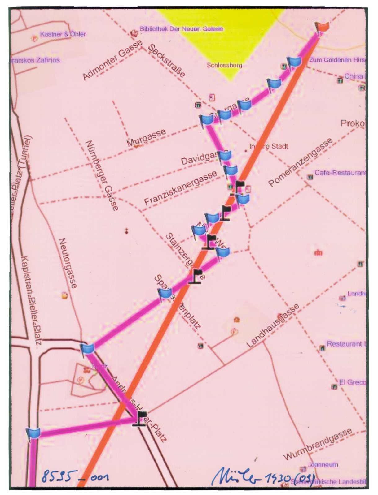 . Thematisch unterschiedliche Projekte; meist Laser,- oder Tintendruck auf Papier / Katrton und danach "gelüftet", teils Vorstudien zu Tafelbildern. "Skizzen" sind selten größer als Din A4, meist kleiner. . . Das ist die gerade Linie, welche sich zwischen Graz und Gradec erstreckt. Nach digitaler Berechnungen ist die Linie 67,9 lang, doch generieren digitale Karten unterschiedliche Längenangaben. Unter Berücksichtigung von Berg und Tal kommt man auf 70 km.
