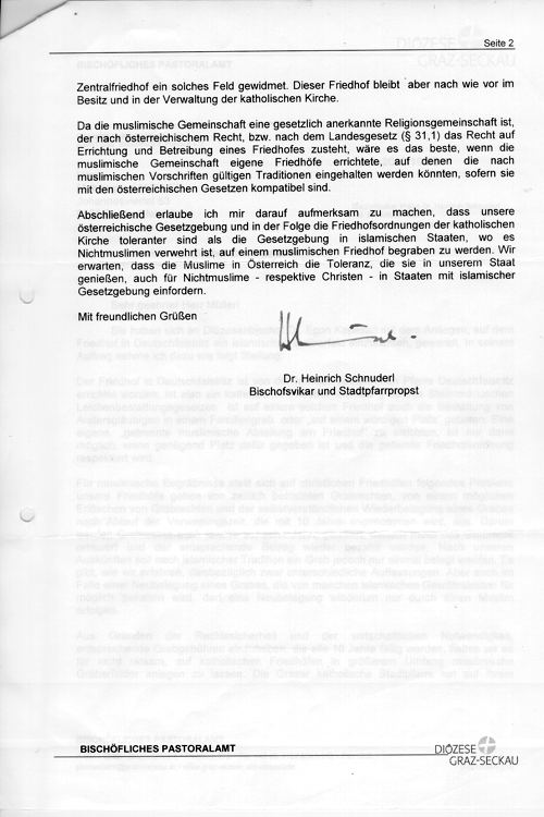 Errichtung Islamischer Friedhöfe in der Steiermark bringen, so wirft