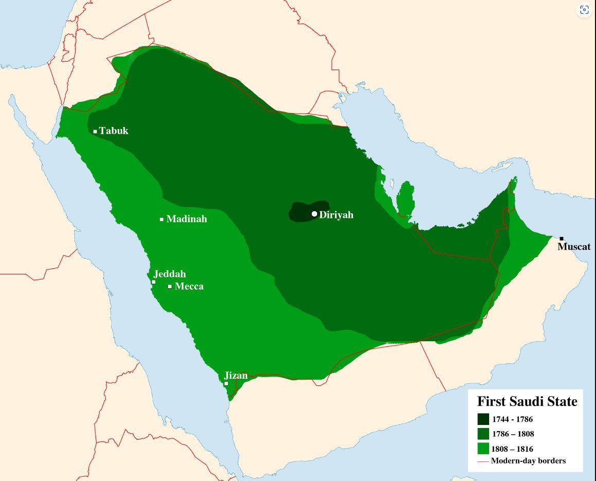 Reichtum inspiriert waren. Bis 1802 hatte der wahhabitisch-saudische Staat