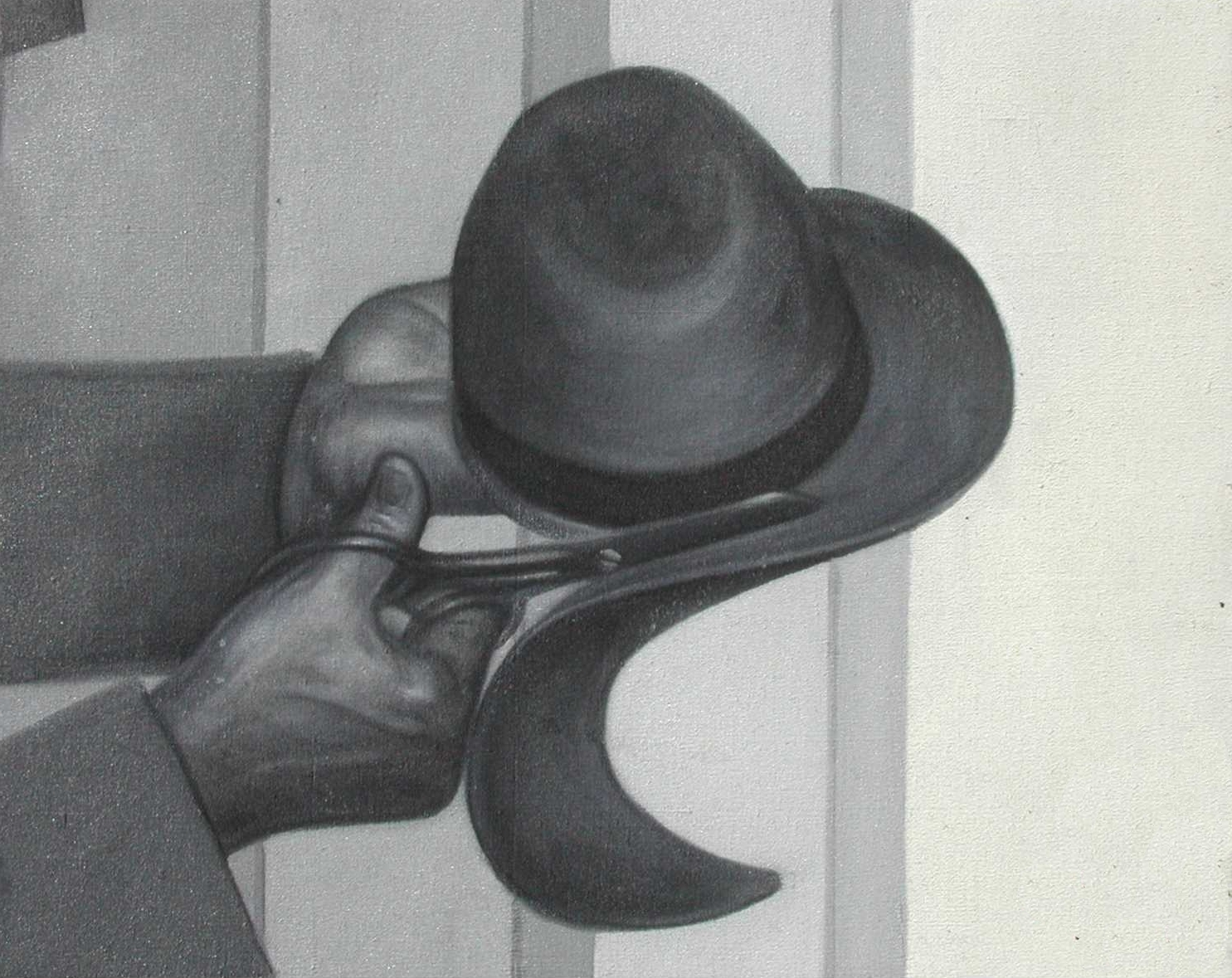 Boden drücken will. Also schneidet er die Hutkrempe ab um seinen